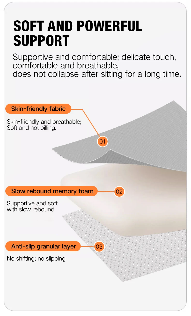 Transform any seat into a comfort zone with this premium memory foam cushion. Designed for extended sitting sessions, it provides targeted support whether you're working at your desk, driving, or relaxing at home.