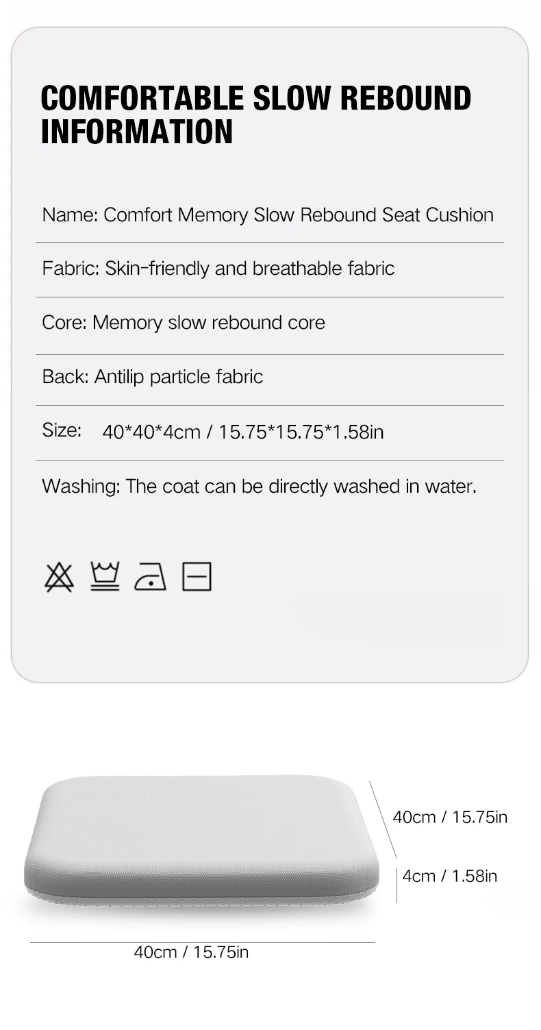 Compact 40x40cm size fits most standard seats. Simple solution, meaningful difference.